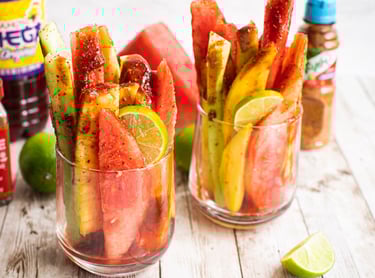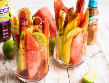 6-10 Fruit Choices Tajin, Chamoy, Honey Sticks & Nuts